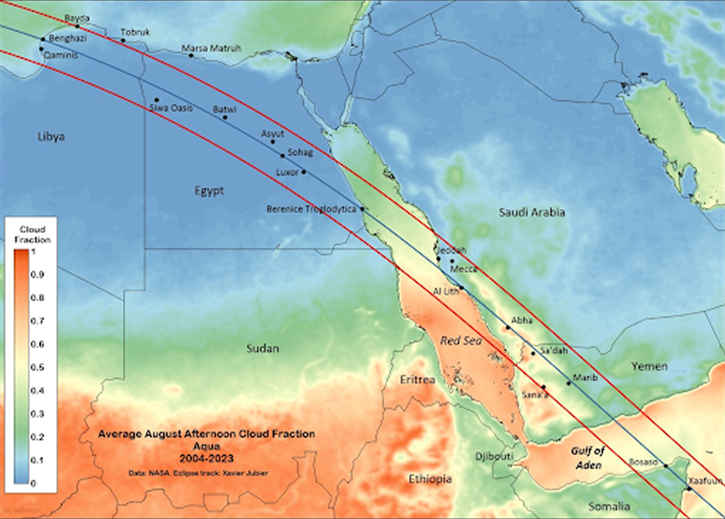 Path of the 2027 eclipse Across Egypt