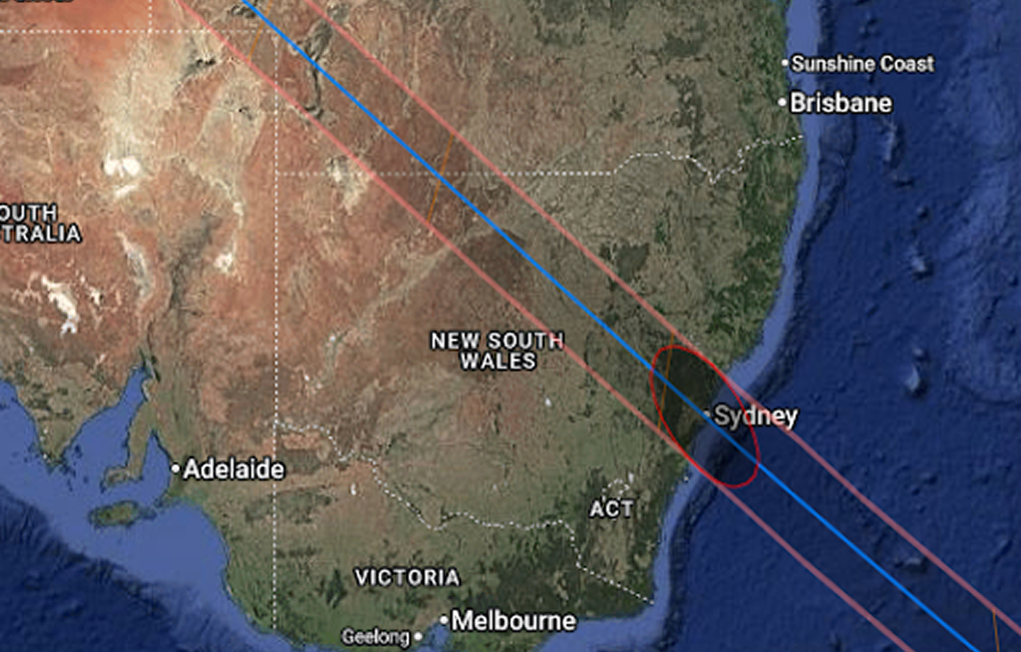 Path of the 2028 solar eclipse in Australia
